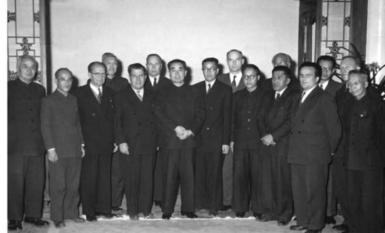 1955年12月,周恩来总理和李四光、竺可桢、吴有训副院长会见参加我国抗生素学术会议的外国科学家。